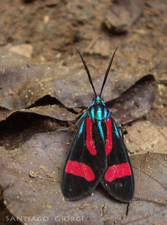 SAntiago, es una polilla (mariposa nocturna). Tiene unos colores muy llamativos para ser polilla, pués en general son poco vistosas.