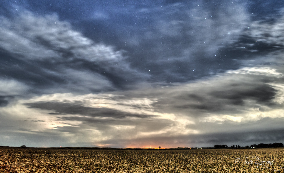 Esta la tome minutos antes de una lluvia torrencial, las nubes avanzaban tan rápido que era casi imposible lograr una captura congelada, y quedo como en movimiento, de fondo se ven las luces de un pueblo cercano, espero que les guste! =)