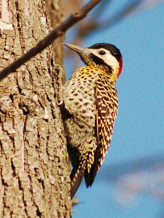 Hola Jorge, una buena toma que me permite apreciar diferencias con los de por acá, que bella es su cabeza. Al que se refiere Alberto, es el Carpintero patagónico, el macho luce cuello y cabeza rojo, pero les cuento que es más fácil seguirlos por el ruido que meten que por el color de la cabeza inclusive en invierno. :)