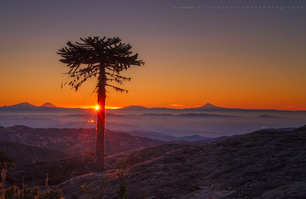 Mas allá de que el paisaje está muy bien logrado, me gusta muchísimo el contraluz del árbol (Creo que es una Araucaria) y el sol asomándose.