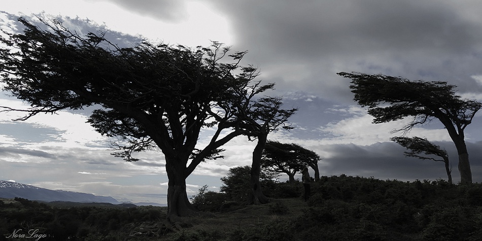 Que increíble la acción del viento en estos árboles Nora, hermosa foto, saludos.