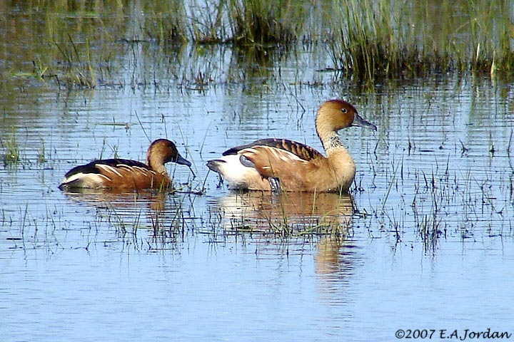 Un par de sirirí colorado en la Reserva de Mar Chiquita. La cantidad y variedad de patos que había era notable.