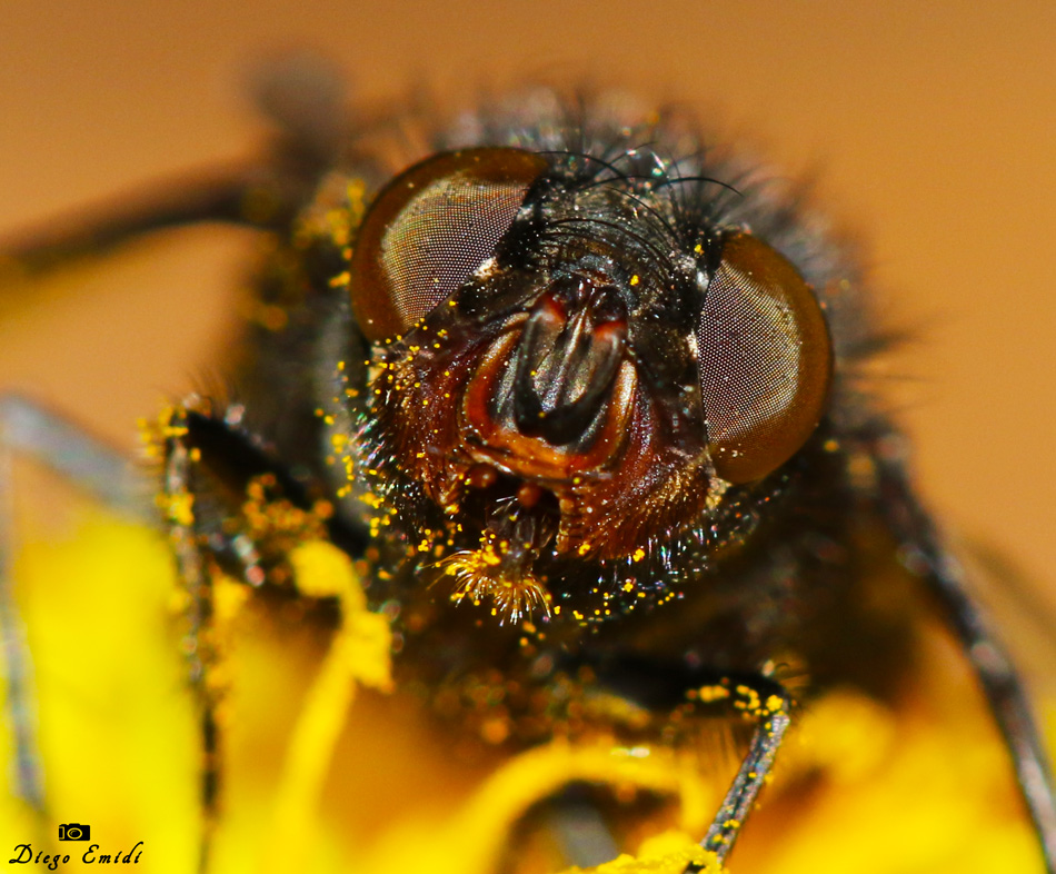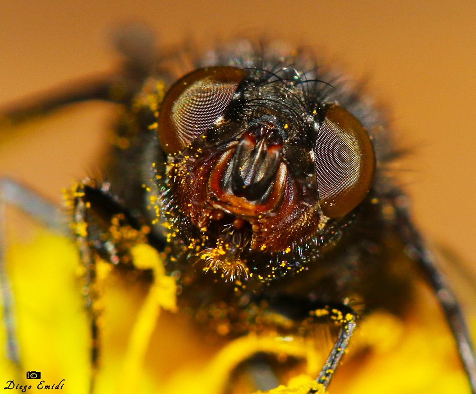 Hola Amigos de FN!, les dejo esta foto de esta mosca que saque ayer tarde, tratando de cazar una abispa me encontre con esta mosca en una flor, le tome una foto de no tan cerca para que no se vuele pero quedaba ahi, se movia un poquito y quedaba, logre esta foto y viendo que no se volaba investigue un poco mas, tenia los dos alas rotas, tal vez escapo de ser presa de algun ave.-