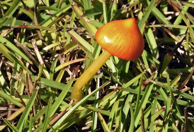Un hongo bastante conocido, que crece solitario en cercanía de cipreces, una especie común y típica de los Everglades. Su nombre común Sombrero de bruja (Hygrocybe conica) no es venenoso.-