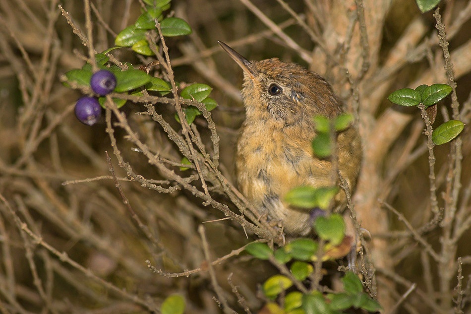 Es un Colilarga, especie que habita el sotobosque dominado por tacuarales y la vegetación arbustiva de bosques húmedos patagónicos hasta los 1200 m de altitud.