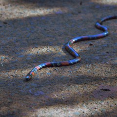 Falsa coral terminando de comer una lagartija.