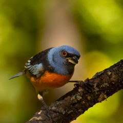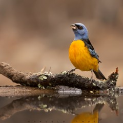 Naranjero (Pipraeidea bonariensis) macho adulto con leucismo parcial.