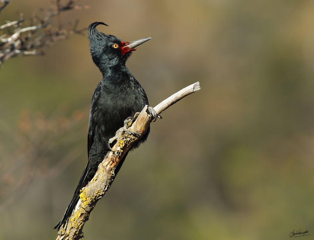 Miré en la Guia de Narosky y veo que es un carpintero gigante hembra (Magellanic Woodpecker). Es una especie de gran belleza que mostrás magistralmente. Colores, negro alucinante, pose, percha y fondo, todo excelente!! Felicitaciones!!!! :adorar: :adorar: