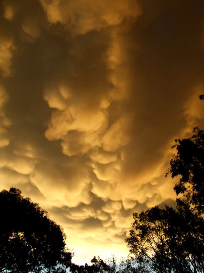 Hermosos colores y formas las de las nubes....muy acertado lo de colocar unos árboles por delante para logra más profundidad y el efecto de que se viene las nubes encima...