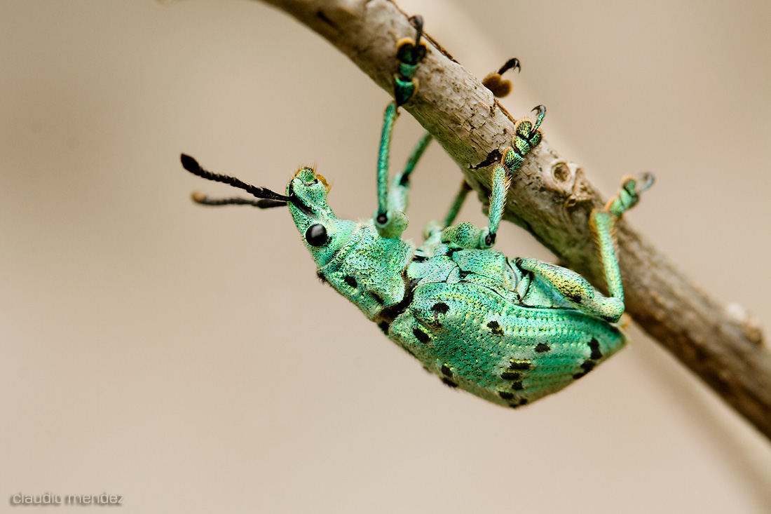 Que sorpresa con los gorgojos verdes, muy buen macro ilustrativo de como hacen estos bichos para caminar cabeza abajo. NOtable la textura del caparazón (o como se llame la zona punteada)