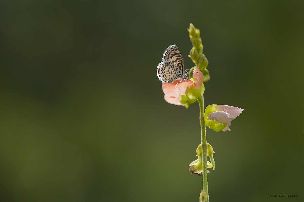 Que delicada!! Flor, mariposa ,fondo todo en armonia! felicitaciones!!