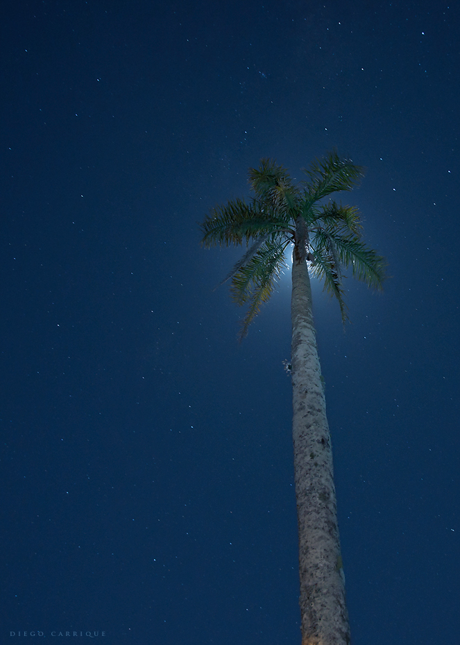 Hola Diego, no está mal, yo también estoy empezando con las nocturnas, yo le hubiera puesto un poco más de tiempo y sobre todo hubiera iluminado más laterálmente la palmera. Otra idea que se me ocurre es dejando la luna a un lado para completar mejor el encuadre, pero eso ya sería otra foto distinta.
