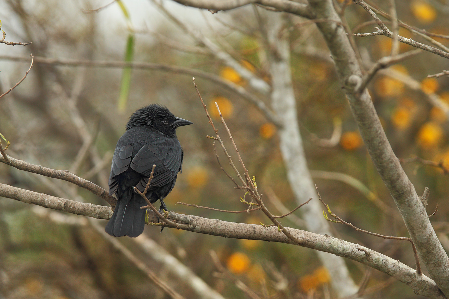 el famoso mirlo correntino o chopí, unos negros que se empastan de la nada, me cansé de sacarle fotos,un nublado casi noche, lo encuentro enramado y pensé que si exponía bien quemaba el follaje, así que hice un horquillado con Iso alta y esto es lo que salió, espero le guste, va a intervenidas por el proceso no? Estaba congelado así que opté por trípode, no se movió en media hora!Nótese que en su cabeza más que plumaje hay PELAJE negro, unas plumillas tipo filiformes como la Urraca común.