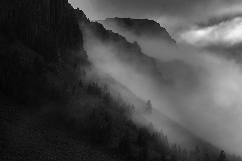Esa ladera poblada de pinos y la neblina, todo hace una imagen especialmente atrayente, ideal para el ByN