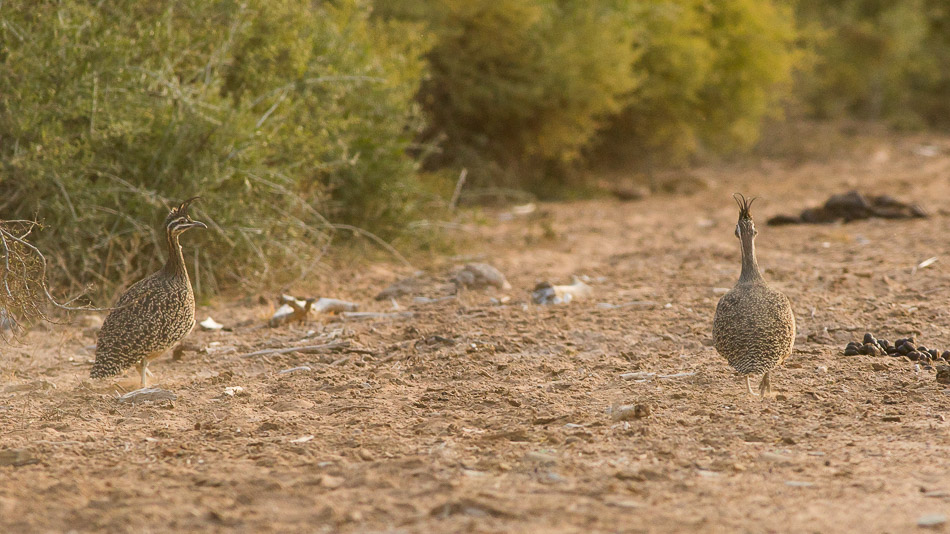No pudo ser, pero en el camino muy orondas iban ellas, una pareja de Martinetas comunes que entre la polvareda del guadal marchaban a paso veloz sin darnos un respiro para poder detener el vehículo y hacerles una foto.