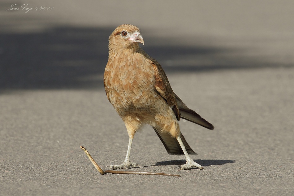 Muy buena foto y momento, Nora!! Excelente la calidad de detalles. Parece hacerse el distraido y mira a la camara el Chimango. (Que pena la perdida de fotos).