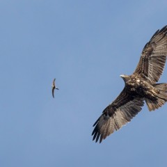 hermosa foto! 2 pájaros de un tiro! felicitaciones, es increíble la diferencia de tamaño (es un águila mora juvenil) |