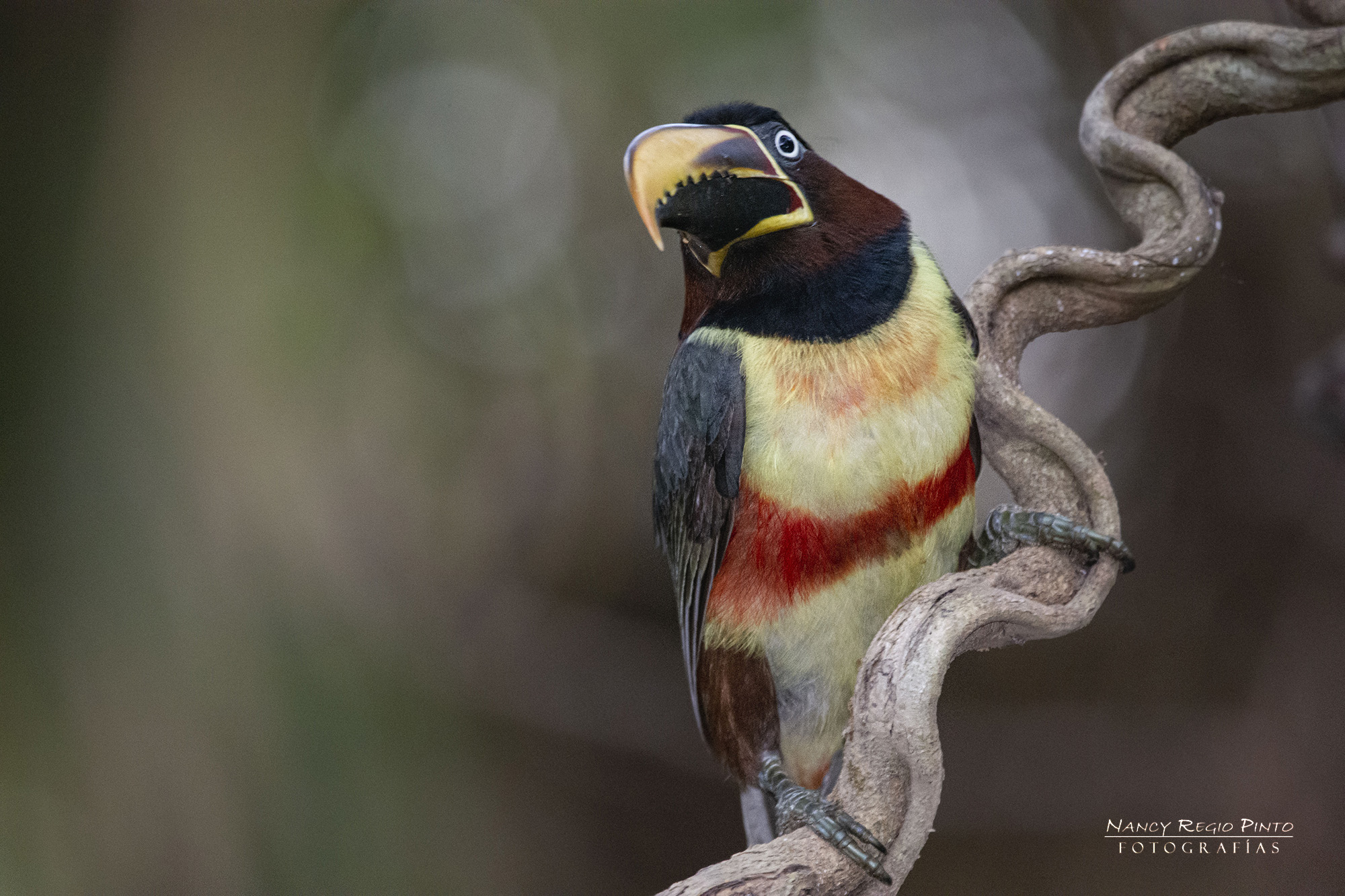 Bien temprano, los Arasaríes fajados bajan a buscar frutas, es el mejor momento para hacerles una foto. Este me quedó demasiado cerca, ja, ja,ja ,ja...pero me gustó. Cuadro completo, sin flash. Le levanté un poco la exposición porque estaba un poco oscuro aún. Espero que les guste! Saludos
