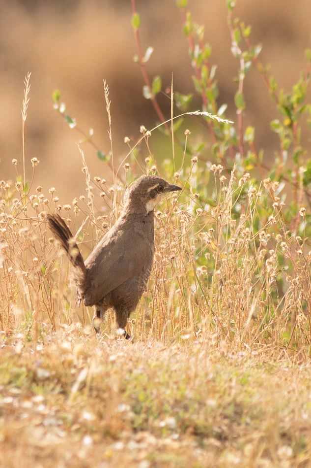 Vuela en muy raras ocasiones, prefiere caminar entre la vegetación baja donde se siente segura.