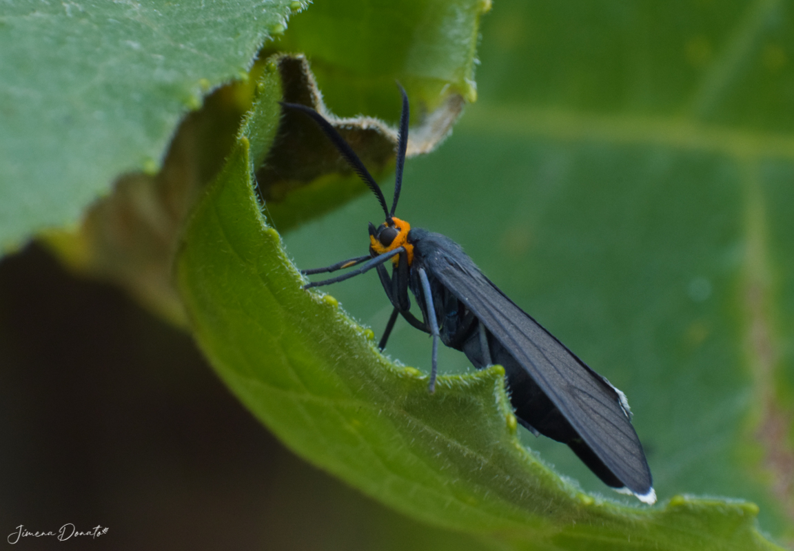 Hola a todos! esta es una polilla negra (Ctenucha rubriceps o Philoros affinis), hace mucho no las veía, me encanta el color de su cuello contrastando y la textura de sus hermosas antenas.