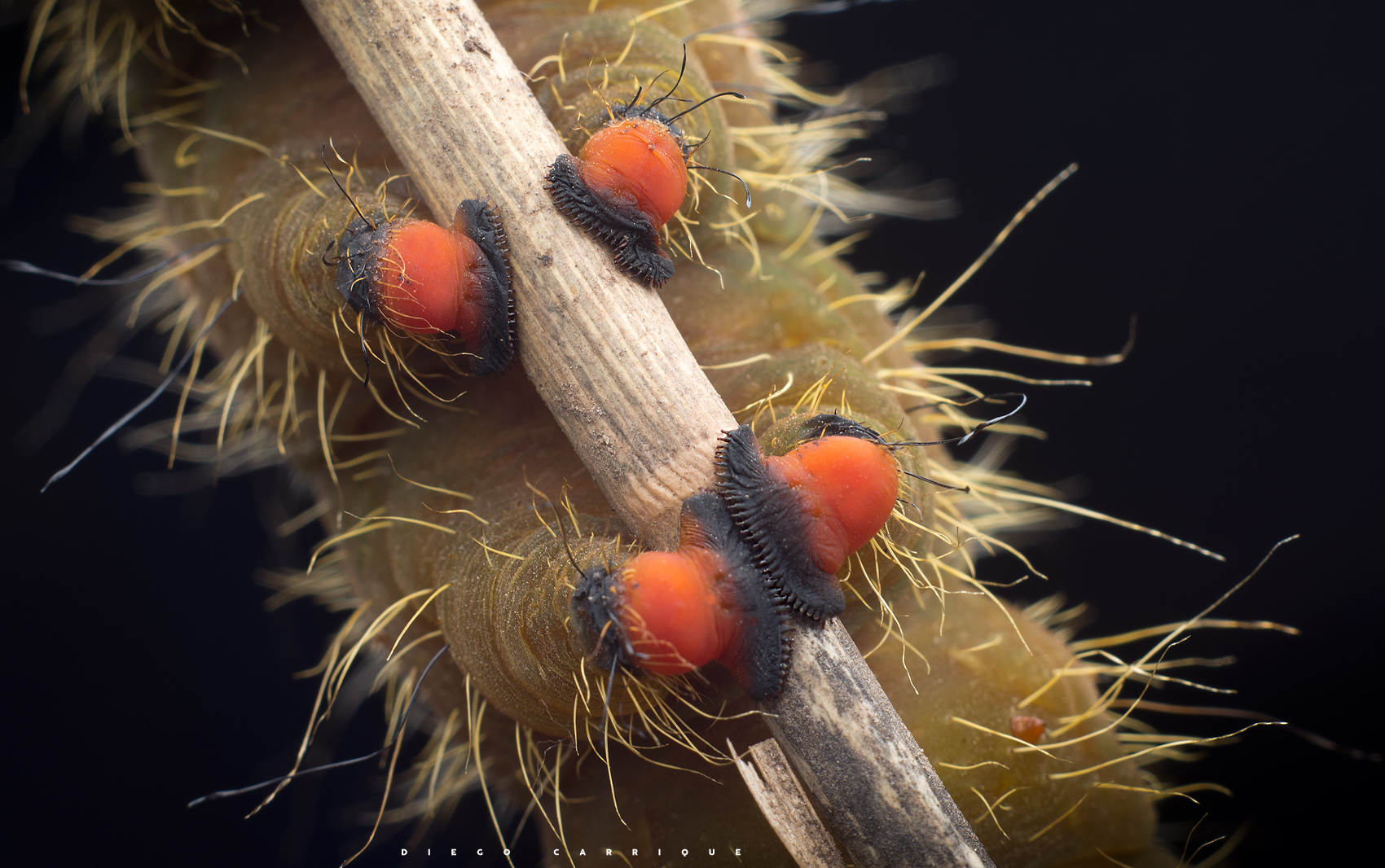 Muy buen detalle. Yo vi las patas falsas en las de borde de oro. Esta oruga tiene más diferencia de tonos y esas garritas se ven muy bien..