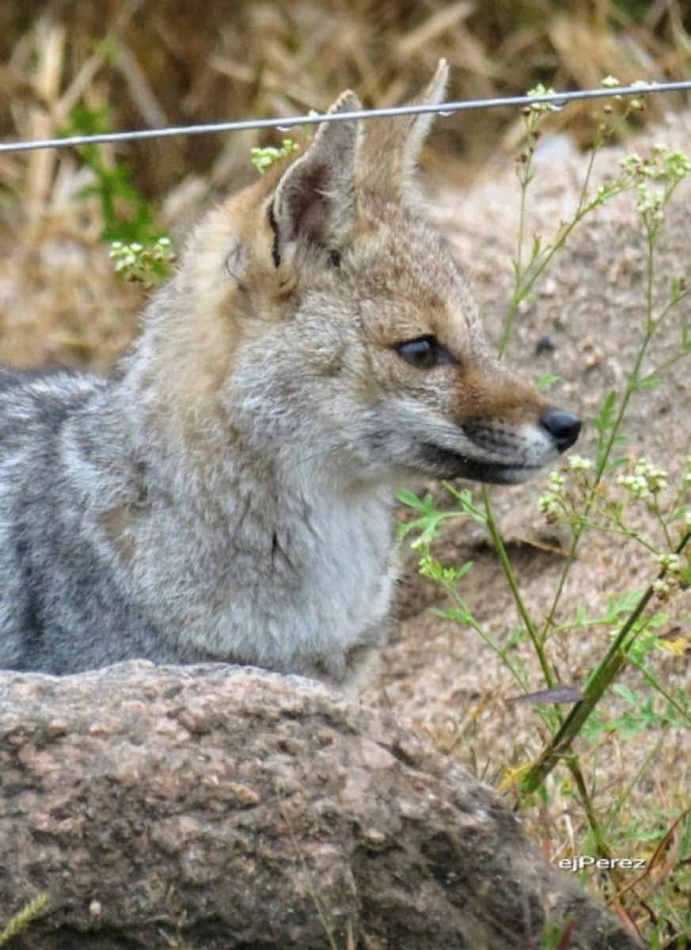 Muy lindo retrato de zorro, Eduardo!! Lindo entorno. El alambre se puede "borrar" con PS.