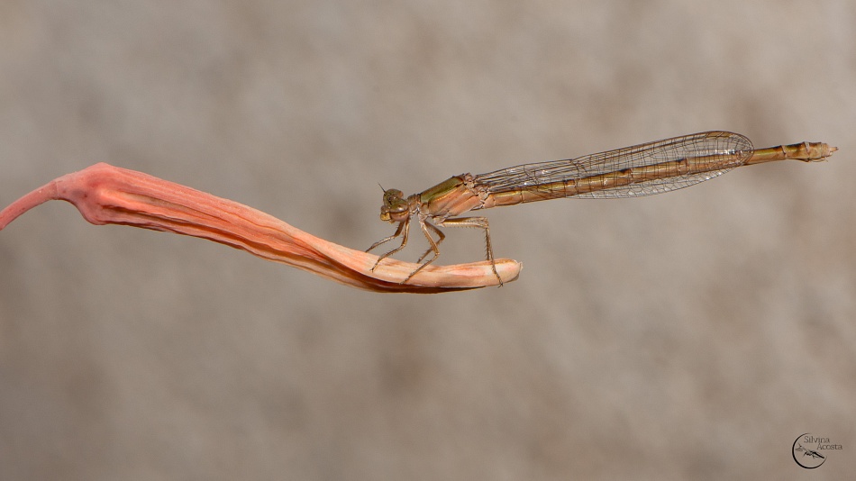 No pude salir a hacer fotos un viento muy fuerte, mas ciertos compromisos familiares, pero al menos llegó este caballito al patio ? Los zigópteros (Zygoptera) son un suborden del orden Odonata conocidos vulgarmente como caballitos del diablo o también, menos frecuentemente, como damiselas (del inglés damselfly, "mosca damisela"). Se diferencian de otros odonatos porque sus alas en descanso se alinean junto al abdomen y porque los ojos están considerablemente separados (Tomado de Wikipedia)