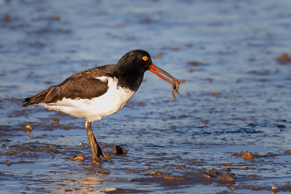 Es variado el menú del ostrero! muy bien mostrado Marco y con una linda luz. Siempre se complica exponer con estos plumajes tan contrastados