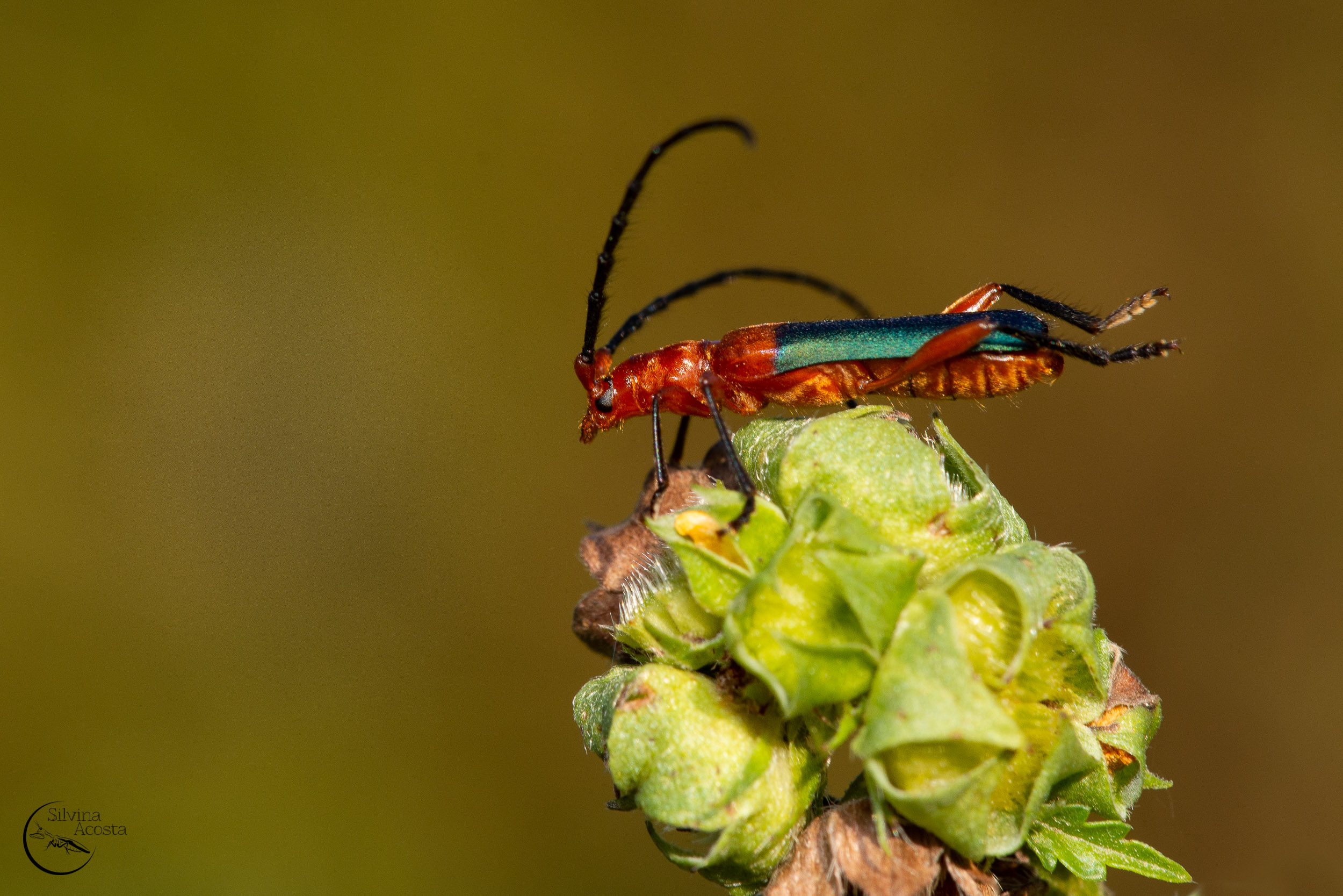 Por aqui lo llamamos Guitarrero (Compsocerus violaceous), muy dificil por el metalizado del torax se lo ve muy bien te felicito Sil