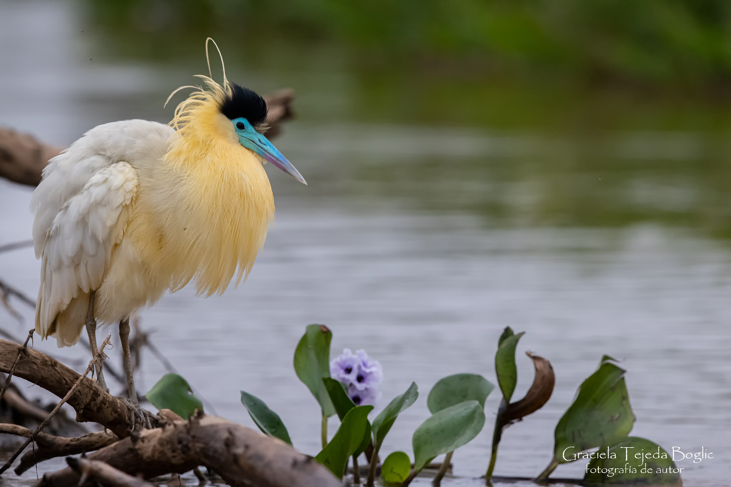 Esta bella garza Real se mostró con toda su belleza para opacar la flor del camalote.