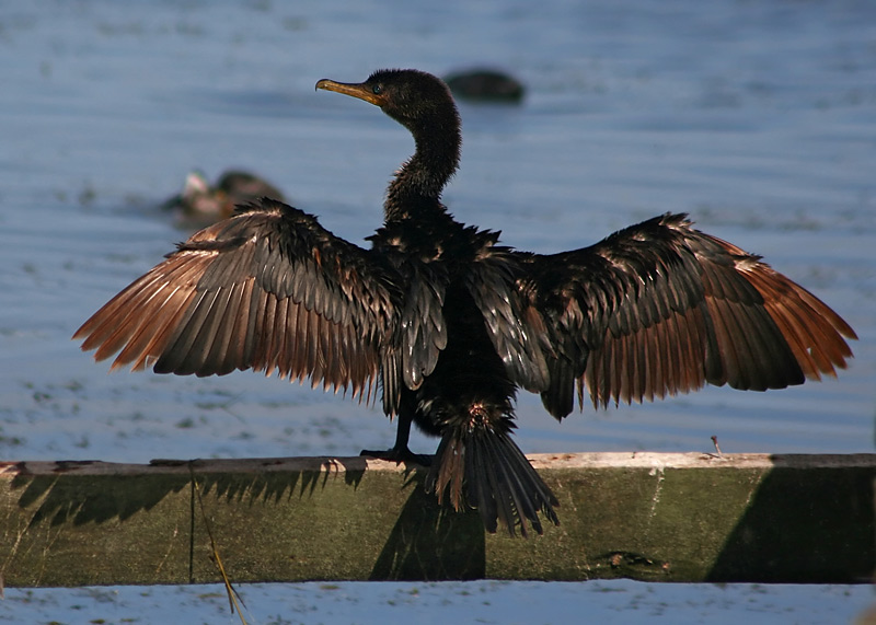 Sigo con otra captura hecha en la laguna Salada Grande. Aquí va un biguá secándose al sol después de un agotador día de buceo y caza submarina en la laguna.