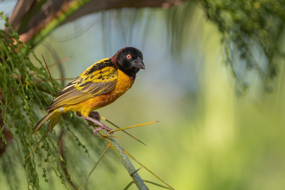 Los tejedores son hermosos, y si los ves armando su nido ...., una belleza. Muy linda esta foto!