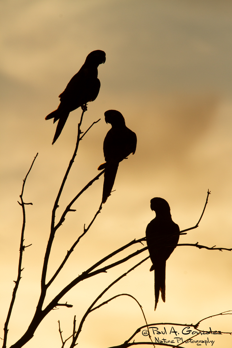 Unos loros barranqueros que cortaban la silueta con el atardecer.-