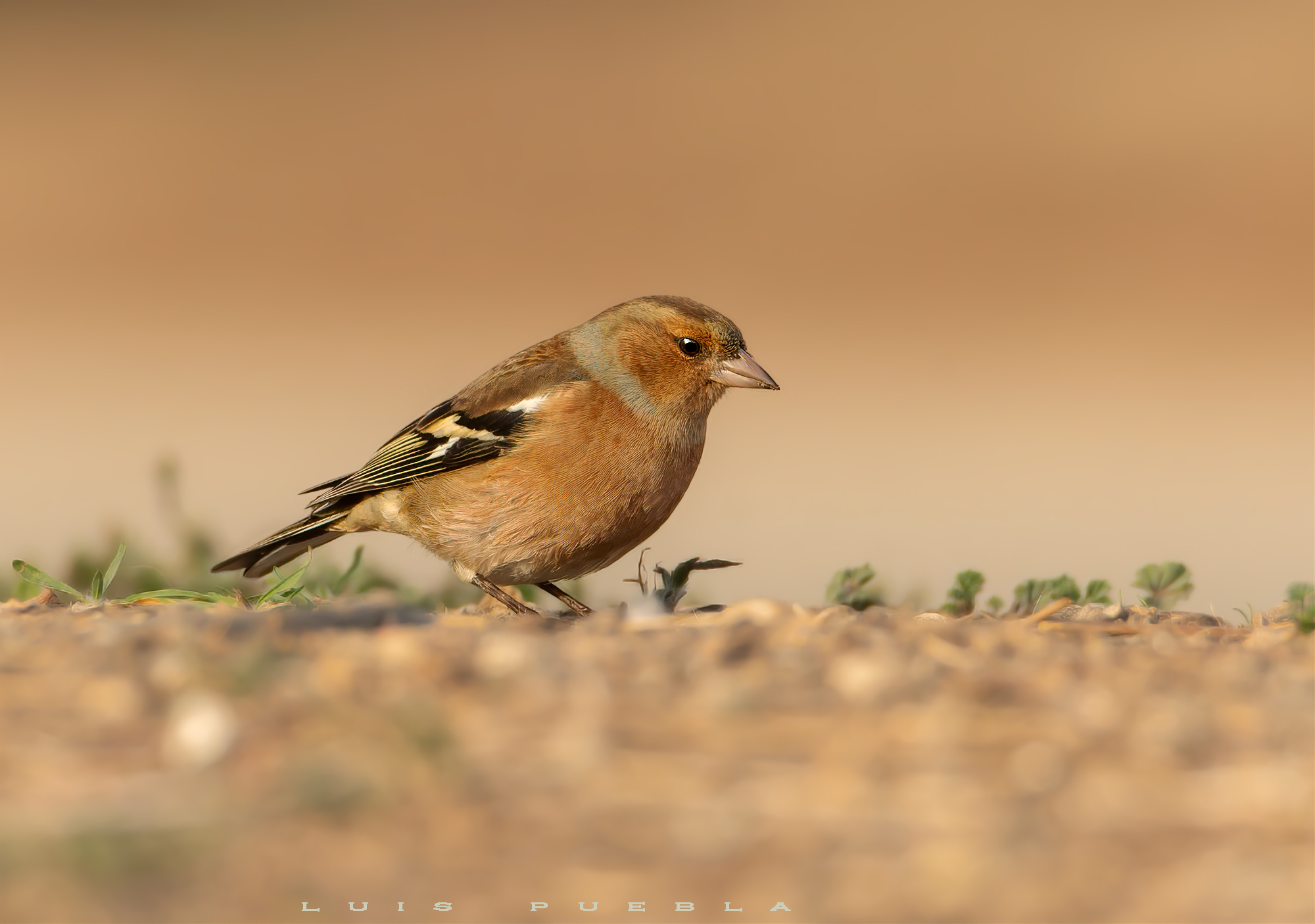 Que bueno que subiste foto Luis! Hermoso el Pinzon, parece una Monterita canela!. Linda captura al ras del piso!!! aca no podrias por que el suelo arde!!!
