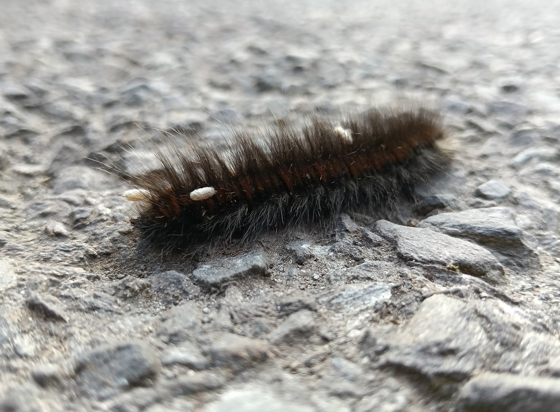 Hola de nuevo, después de tanto tiempo sin subir fotos hoy subo esta toma de esta especie de mariposa. Se trata de la Macrothylecia rubi o llamada comunmente polilla zorro. Me cruzo muchas veces con estas orugas, son bastantes abundantes en Europa. Si os fijais tiene como unos huevecillos en el lomo, pero no se que son.