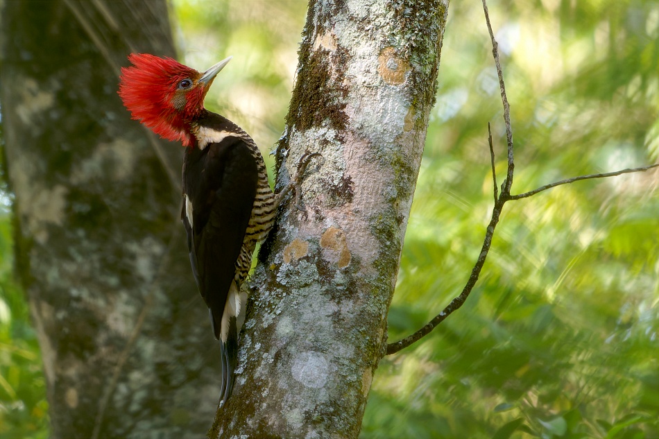 En la primavera del 2025 por primera vez anidó una pareja de Carpintero cara canela en la pequeña reserva peri-urbana de PP de la Araucaria, para mi gran alegría. Tuvieron un nido exitoso de lo cual volaron dos juveniles el 11 de noviembre (https://www.elterritorio.com.ar/noticias/2025/11/30/869980-avistan-nido-del-carpintero-cara-canela-en-el-parque-araucaria). Aun así, teniendo una pareja en la selva detrás de mi casa, siempre sigue una ave difícil de encontrar. Buscándolos casi diariamente, durante 71 mañanas tempranas, tuve tres o cuatro encuentros que resultaron en fotos. Acá una foto del macho adulto.