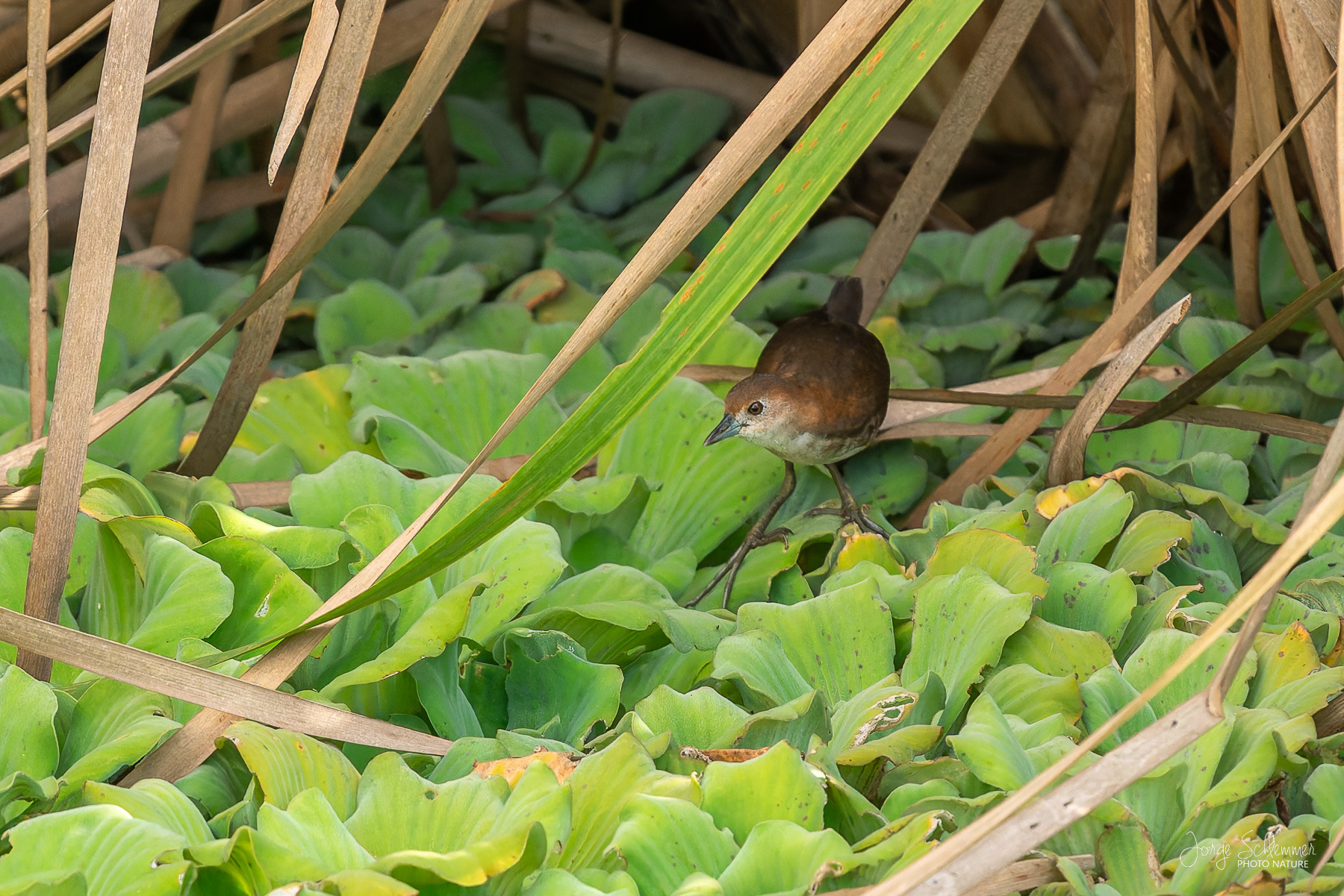 Divisamos este individuo a lo lejos (+30 m.) en un terreno anegado, muy tímido y siempre debajo de unas plantas.