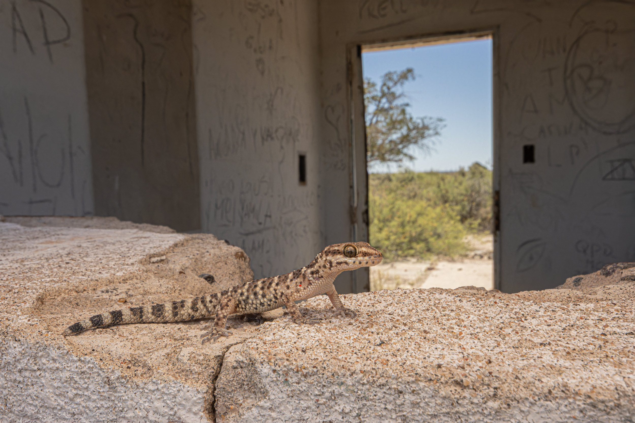 Un gecko que encontramos en unas estructuras abandonadas.