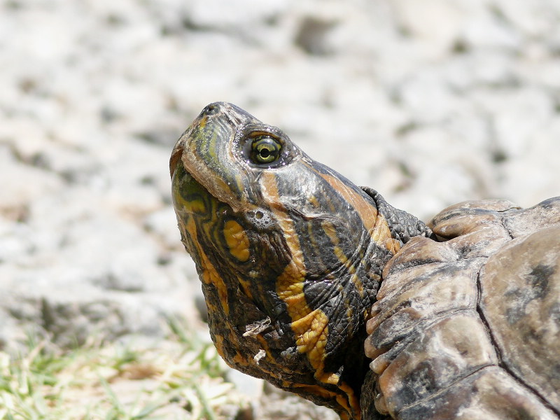 Hola, de esta no puedo decir que es rápida, que no me dió tiempo, así que los resultados son de mi exclusiva responsabilidad. ISO 100 f 3.6 v 1/1000. flash automático,a un metro de ella, creo que quemé un poco el fondo y el caparazón, pero me gustan los detalles de la cabeza