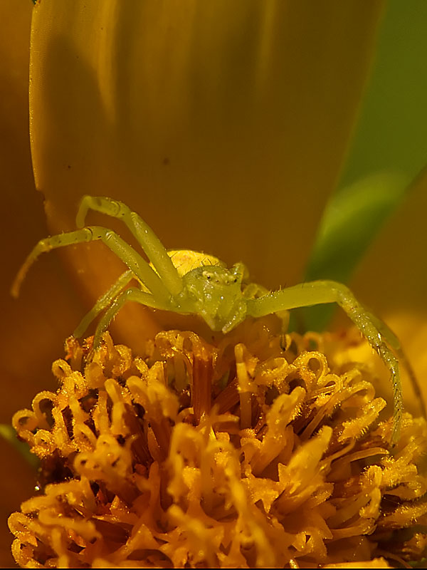 Me gustaron los detalles de la araña.. para lo pequeña que debe ser, además de ese brillito en los estambres y el color.. :) Saludos.