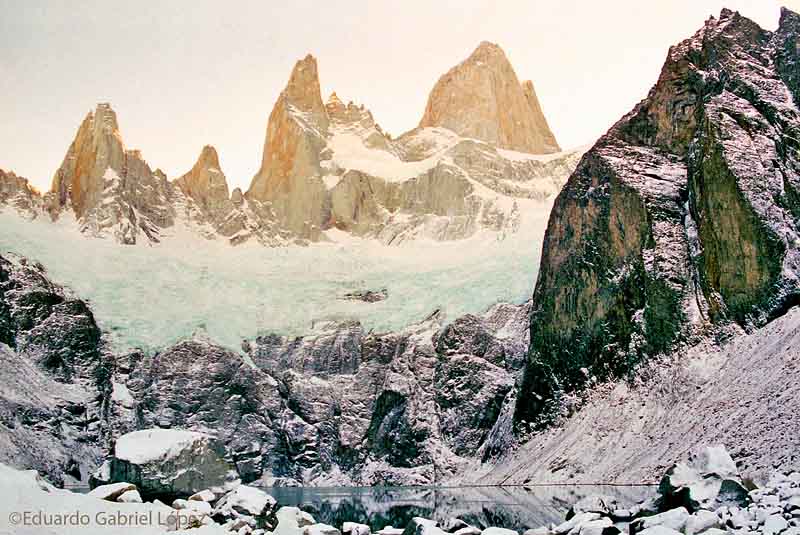 Eduardo, yo que estuve por ahí, se lo dificultoso de la marcha (en verano). Me imagino en invierno!!. La foto me encanta, esos son paisaje soñados para los que amamos el sur. Obviamente se notan algunos detalles (pasa lo mismo con mis fotos de ese lugar, analógicas) pero que en nada la desmerecen.