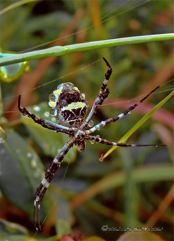 Muy buena captura Hector!!! esas gotitas de agua le quedan espectacular, llama un poco la atencion el palito de arriba que tiene un color raro, o quizas sean mis ojos :lol: :lol: .No soy un gran entendido de arañas, muy buena la info.. pero si no me equivoco creo que esta pertenence al genero Argiopes, son muy lindas por cierto. Un saludo tambien asssssi de grande. ;)