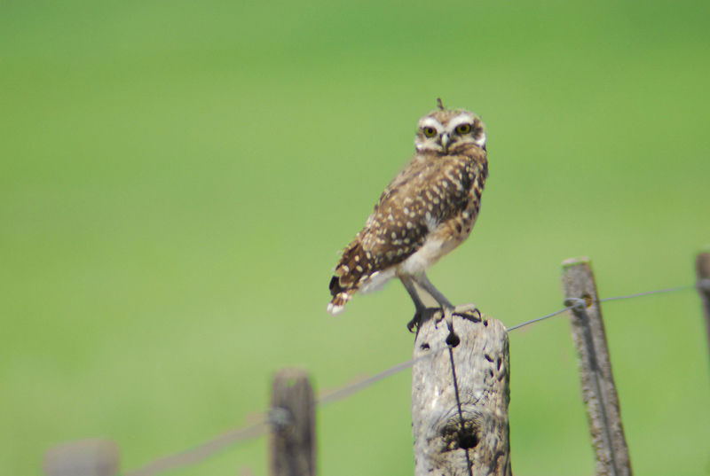 Es una lechuza vizcachera, y suele haber muchas en esa zona hermosa de la provincia, la foto esta buen le falta un poco de foco una lastima por que ese fondo te quedo espectacular, saludos.