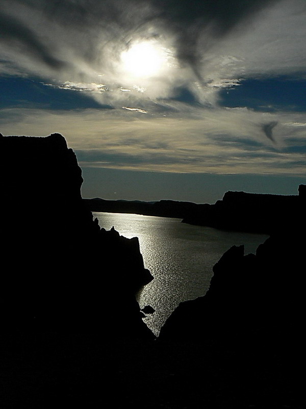 Muy pero muy buena,me encanta esa compo con las montañas a contraluz en primer plano y esa suave iluminacion sobre el agua, junto con la nubes, una compo de primera saludos.