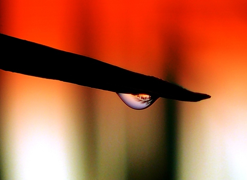 los colores del fondo y el contraluz hacen una combinacion increible y muy delicada... el reflejo de la palmera en la gota es muy interesante y realmente esta foto es muy creativa y artistica.. felicitaciones y gracias por compartirla...