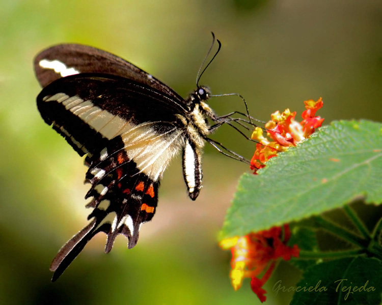 Hola Graciela, me voy a poner colorado con tus palabras, nada mejor que compartir con aquéllas personas que sienten la misma pasión por la naturaleza como ustedes. Yendo a la foto, esta es una Heráclides hectorides, "Héctor" para los muchachos... :lol: :lol: y es difícil de fotear como todos los papilónidos por su constante movimiento alar que no nos permite dar foco y clavarlas como vos lo lograstes, está posada sobre lantana. Por lo visto Cataratas te dio oportunidades como esta. Vayan mis felicitaciones y gracias por todo.