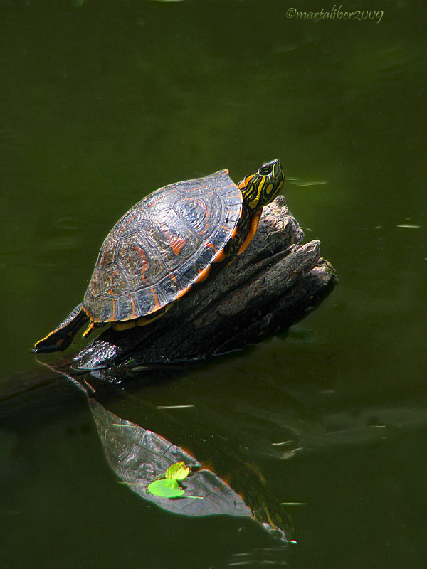 superlinda la tortu!!! y esas hojitas verde claro sobre le reflejo enriquecen muuuuucho la compo :aplausos: :aplausos: :aplausos: