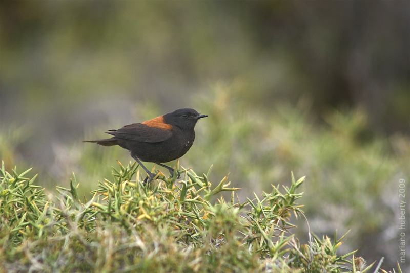 Hola a todos... nuevamente subo otra foto; esta vez una imagen más de la serie de Camarones acá en Chubut. Esta es una especie que me encanta porque siempre es un desafío por su color y su comportamiento tan inquieto….Se trata entonces de un macho de sobrepuesto (Lessonia rufa) que posó unos instantes ante mí….Tuve que recortar un poquito de atrás del ave porque no podía usar el monopié porque el arbusto estaba casi al mismo nivel de la dunita en que estaba tirado yo y el viento realmente dificultaba las cosas para encuadrar bien…
