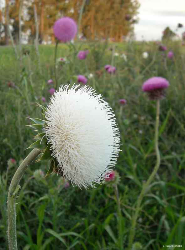 En esta oportunidad quiero compartir con ustedes y simplemente pedir una opinion al respecto sobre esta flor de cardo color blanca que floreciera en estos dìas en mi pueblo, quiero decirles que en mis 37 años nunca antes habia visto una igual. recorro a seguido tada la zona de los campos cercanos al pueblo y solo las vi en un solo lugar, y no mas de 5 o 6 plantas, mezcladas entre un grupo de las tradicionales.