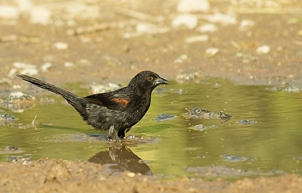 El 11/03 en la RECS, estuve un rato largo en el suelo viendo pasar por el charquito a Cabecitas Negra, Jilguros, Chingolos, hasta que le llegó el turno a este Boyerito, cuando quedó sin pájaros alrededor le tomé está foto.
